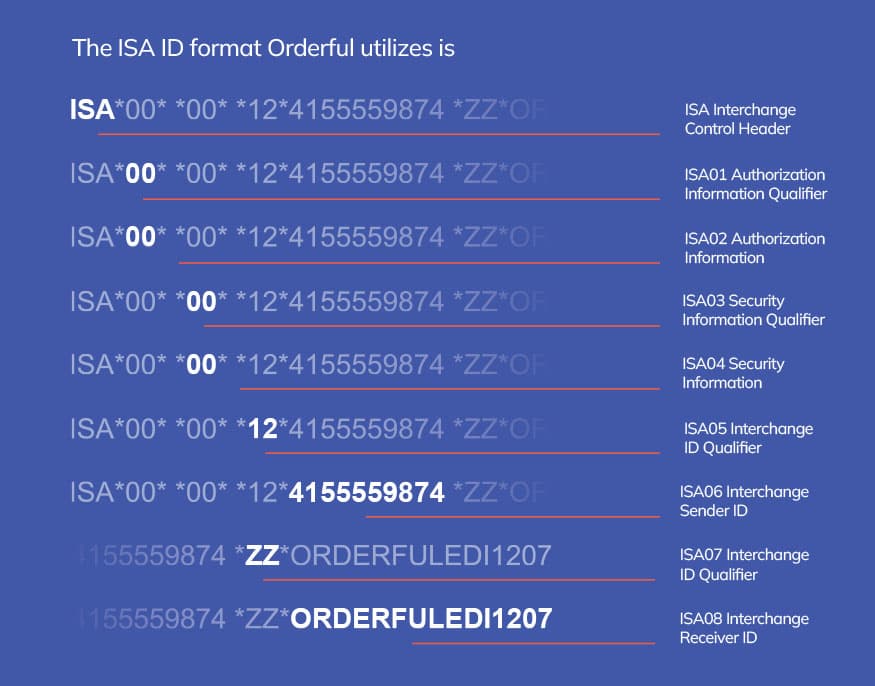 - ISA segment: Interchange Control Header, where the ISA ID is entered